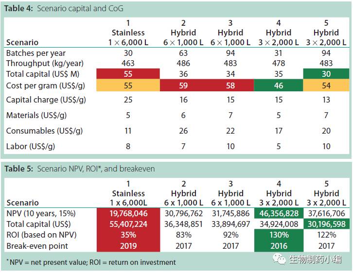 笔者在此当然不是回避某项技术的好坏,只是任何技术在发展过程中都要经历阶段,一次性技术诚然如此。既然我们明白很难将单纯的一次性技术和传统技术分割开来,那么遵照存在即合理的原则,杂合型的技术将是目前更为经济的技术。当然从上表数据来看,相同总规模情况下,杂合性的技术比不锈钢的传统技术单位成本更低,同时收回成本的时间更快。