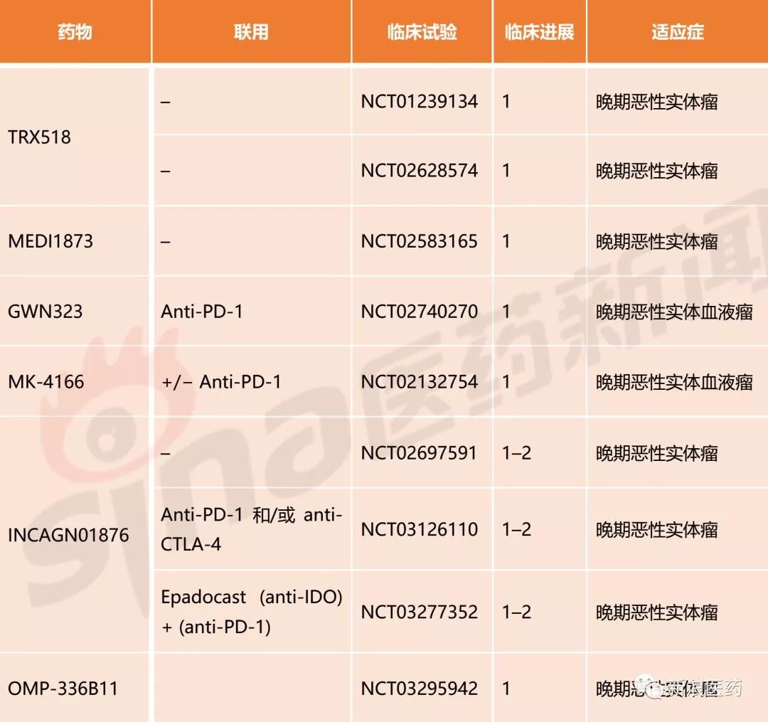 多种实体瘤模型早期临床前显示,GITR 激活的抗肿瘤活性,特别是于其他免疫调控药物联用。同时,GITR 激动剂对于OX40刺激表现一般的低免疫原性模型也有效果。